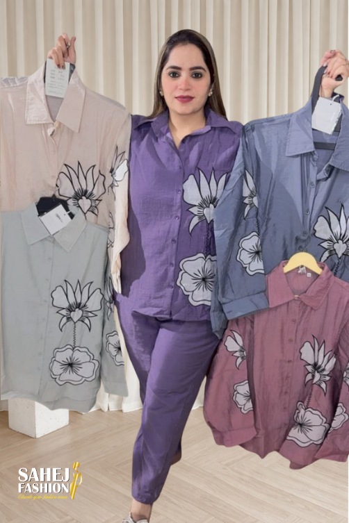 Stylish shirt-style coord set featuring a bold floral print and a comfortable straight fit.